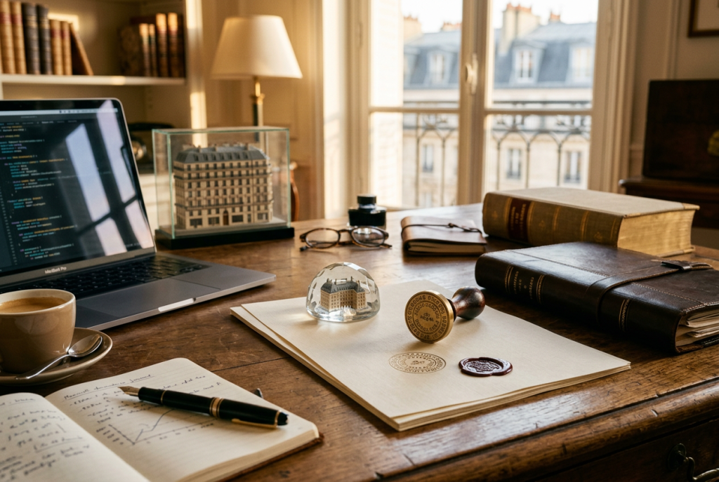 - Le dépôt chez un commissaire de justice (250-500€) – preuve solide et adaptée aux documents volumineux